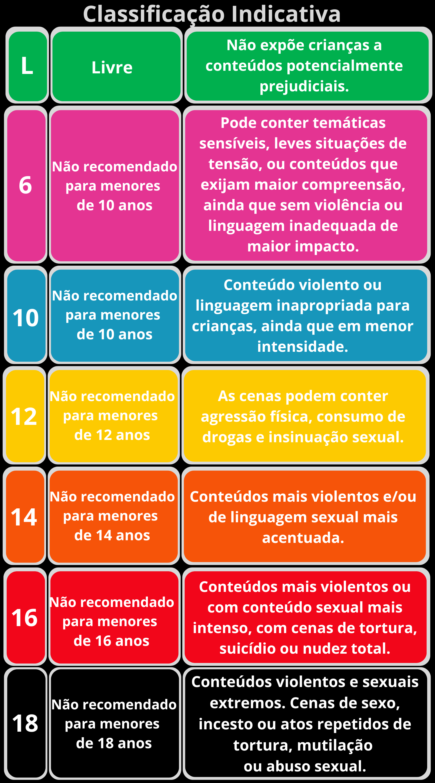 Entenda a nova simbologia das classificações indicativas: